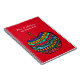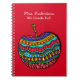 School teacher's notebook done in red, with graphics of a colourful folk art style apple. Personalise the white text, for yourself or your favourite teacher.