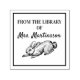 Rubber self-inking stamp for a teacher's library. A cute little bunny rabbit is at the bottom. Text says, "From the library of YOURNAME." Text is customisable. Contact us for help with customisation or to request matching products.