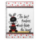 Cute teacher's notebook done in a white, black, and red, with adorable graphics of a whimsical ladybug standing on a pencil. Graphic text reads, The best teachers teach from the heart. Perfect gift idea for your favourite teacher.