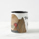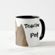 Orange tabby cat on an old fashioned school desk with an apple and a book lays claim to being teacher's pet photo mug