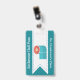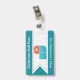 Fun school bathroom hall pass done in teal with a white ribbon, running down the middle, with graphics of a colourful toilet paper symbol. Personalise the custom text to read what you want.
