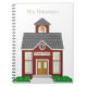 School teacher's notebook, with graphics of an old fashioned red school house, against a white background. Personalise the text, for yourself or your favourite teacher.