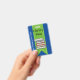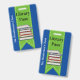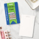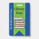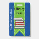 Fun school library hall pass done in blue with a green ribbon, running down the middle, with graphics of a stack of books. Personalise the custom text to read what you want.