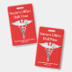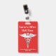 School nurse's office hall pass done in red with silver tone graphics of a medical symbol. Personalise the custom text to read what you want.