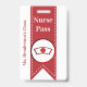 Fun school library hall pass done in white with a red ribbon, running down the middle, with graphics of a nurse symbol. Personalise the custom text to read what you want.