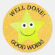 cute cartoon of a happy star with text reading "Well done! Good Work!"