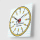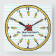 What Fun! Clock-Watchers and Teachers will delight in this whimsical wall clock, for home or classroom. Design features a background that mimics lined notebook paper, a wide yellow & black circular frame, an array of yellow pencils pointing to each hour marked w/ numerals, a red apple center and custom text field for Teacher's name or other caption.