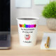 Cute Teacher's Welcome to My Class paper cups, showing a bright colourful WELCOME followed by wording which reads (insert your name here)'S CLASS IS A HAPPY PLACE. This text is CUSTOMIZABLE so you can add your name and class or create your own text. There is also a smiling face icon. You can use these Welcome party cups to welcome your new students back to school with a special welcome party. Matching party supplies and gifts are available.