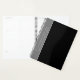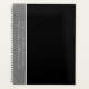 Black and grey teaching planner with text up the side. Spiral bound, with a place for one or two lines of text such as teacher’s name, class and year. Minimalist, masculine design, for a male teacher, with blank, black front and dark grey border with light grey, printed wording. Reverse is solid black.