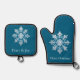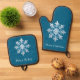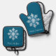 Teak White Light Blue Christmas Snowflake Oven Mitt & Pot Holder Set
