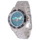Has heft and feel of expensive stainless steel quartz watches. Good band with safety catch.  I removed links, which is easy because engraved arrows show direction to push the linking pins. As always by this seller, the image (a railroad logo) is a perfect reproduction of my emailed image, and is precisely spaced and aligned.