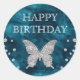 Teal Acrylic & Silver Glitter Butterfly Birthday Classic Round Sticker