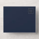 The left-hand edge of this elegant modern all-in-one wedding invitation and RSVP features a teal blue watercolor agate border trimmed with faux gold glitter. The customisable text combines gold-coloured whimsical handwriting script, copperplate and italic fonts on a navy blue background. The return address appears on the outside flap and the reverse side of the detachable RSVP card in gold-coloured text on solid navy blue.