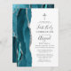 Teal Agate Silver Glitter First Holy Communion Invitation