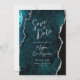 Teal Agate Silver Script Wedding Save the Date Invitation