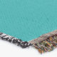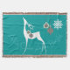 Teal All is Calm All is Bright holiday throw blanket, features a solid teal blue background, pale blue text that reads All is Calm All is Bright, and a silhouette white deer with ornaments hanging from his antlers! This pretty holiday throw is a great gift for yourself or someone you love and will become part of your Christmas traditions!