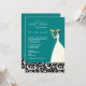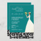 An elegant bridal shower invitation for the modern bride featuring a bride with flowers on a coloured background. Available in alternate colours. Please contact us if you are looking for another colour combination. Matching thank you cards, favours and postage also available.