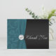 ** Please note that the ribbon and jewels are printed images, and are not real. This dramatic teal and black floral damask thank you card with FAUX ribbon and jewelled medallion with a tiara on it matches the Quinceanera invitation shown below. There is also a greeting cards style thank you card, if you would prefer that. The tiara can be removed by using the "clear" function in the personalised section. The text and paper choices are fully customisable. If you require any matching items, such as enclosure cards, programs etc. please email your request to niteowlstudio@gmail.com.