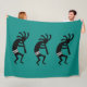 Teal And Black Kokopelli Southwest Design Fleece Blanket