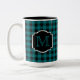Teal and Black Plaid Monogram Two-Tone Coffee Mug