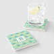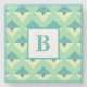 Teal and Blue Geometric Pattern Monogram Stone Coaster