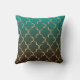 Teal and Brown Blend | Golden Quatrefoil Pattern Cushion