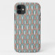 This phone case has an art deco design of arches and upside-down Ys repeating across the design in teal and copper on a field of white. Want different colours? Message me.