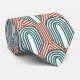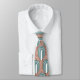 This necktie has an art deco design of arches and upside-down Ys repeating across the design in teal and copper on a field of white. Want different colours? Message me.
