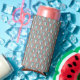 This seltzer can cooler has an art deco design of arches and upside-down Ys repeating across the design in teal and copper on a field of white. Want different colours? Message me.