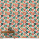 Teal and Coral Bloom Gold Accent Modern Floral Wallpaper