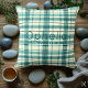 Embrace cosy sophistication with this custom plaid pillow, featuring a harmonious blend of teal and cream. Ideal for creating a welcoming atmosphere, this cushion can be personalised with a name and phrase, adding a personal touch to your favourite spaces. Designed for those who seek both comfort and elegance, this plaid pillow is perfect for adding a classic yet soulful accent to any room, making it an essential piece for a warm and inviting home.