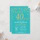 40th Birthday Invitation with Teal and Gold Glitter Diamond Background. Gold Confetti. Adult Birthday. Male Men or Women Birthday. For further customisation, please click the "Customise it" button and use our design tool to modify this template.
