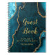 This elegant and glamourous birthday party guest book features a teal blue agate marble background with faux gold glitter accents. The text combines handwritten script and modern sans serif fonts for a classy and sophisticated look. This will be perfect for an autumn fall and winter birthday party.