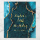 Teal and Gold Agate Marble Birthday Wine Label