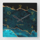 Teal - turquoise and faux gold foil agate stone wall clock customisable with your text. Please note that this clock is not made from real agate stone.