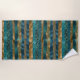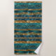 Teal and gold brush strokes and monogram beach towel