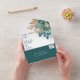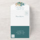 Introducing our all-in-one wedding invitation – a vision of romance in teal and gold. The delicate palette sets the tone for a dreamy celebration, complemented by the ethereal charm of a bouquet in soft teal and gold colours. This invitation combines elegance and simplicity, ensuring every detail is as enchanting as your love story.
