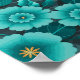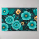 Teal and Gold Floral with Dark green Leaves Poster