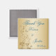This teal blue and gold flowers and butterflies thank you wedding favour magnet matches the wedding invitation shown below.