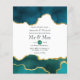 Watercolor teal and faux gold foil agate stone wedding invitation customisable to your event specifics.