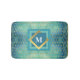 Teal and Gold Geometric Triangle Any Monogram Bath Mat