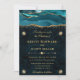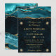 This luxurious wedding invitation features a deep teal agate‑inspired background accented with shimmering faux‑glitter gold detailing and elegant gemstone textures. Rich teal, turquoise, and ocean‑blue tones blend seamlessly with metallic gold accents to create a sophisticated, high‑end aesthetic. Refined gold and white typography adds timeless romance, while the overall design evokes celebration, elegance, and contemporary luxury. Perfect for weddings with teal‑and‑gold themes, agate or marble‑inspired décor, or any ceremony that blends bold colour with classic refinement, this invitation sets the tone for an unforgettable wedding day.