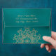 Add your address to these beautiful teal green JEWEL TONED and gold square shaped envelopes with an exotic Indian inspired ornamental sari MEDALLION pattern WITH A FLORAL AND LOTUS SUNBURST DESIGN. This elegant and beautiful modern Indian style wedding invite is perfect for any formal occasion WITH AN EAST ASIAN INDONESIAN MOROCCAN ALADDIN OR ARABIAN NIGHTS THEME. Designed by Chrissy H. Studios, LLC. All Rights Reserved.
