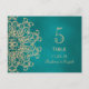 TEAL AND GOLD INDIAN WEDDING TABLE NUMBER CARD