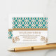 Elegant, stylish and beautiful french baroque Moroccan inspired wedding reception enclosure cards with a repeating teal blue green hue and gold geometric pattern design and gold hued floral flourishes. This upscale and luxe enclosure card is perfect for a Moroccan, Arabian Nights or Aladdin themed wedding. The front and back of these custom, reception cards can be personalised with your wedding reception details. Artwork and design © Chrissy H. Studios, LLC. All Rights Reserved.