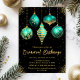 Host a festive and stylish ornament exchange with this luxurious black, teal blue and gold invitation. This design features a rich black background adorned with shimmering gold accents and five intricately illustrated hanging ornaments, each showcasing floral, snowflake and geometric patterns. This elegant layout sets the tone for a warm and celebratory seasonal gathering. Perfect for holiday swaps, office events or cozy get-togethers with friends and family.