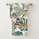Teal and gold patterned tropical leaves brush paint strokes bath towel set. It showcases patterned tropical leaves with brush strokes in teal blue and gold and confetti. You can customise it and add your images or graphics.