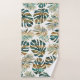 Teal and gold patterned tropical leaves bath towel set