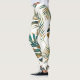 Teal and gold patterned tropical leaves brush paint strokes leggings. It showcases patterned tropical leaves with brush strokes in teal blue and gold and confetti. You can customise it and add your images or graphics.