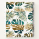 Modern tropical leaves patterned with teal and gold brush strokes and monogram notebook featuring monstera and palm leaves patterned with brush strokes in teal blue and gold and confetti.